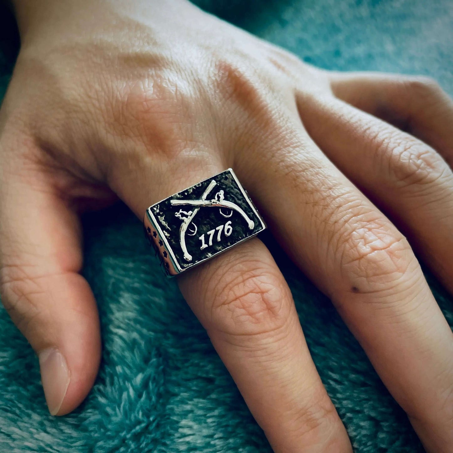 1776 CROSSED GUNS STAINLESS STEEL RING